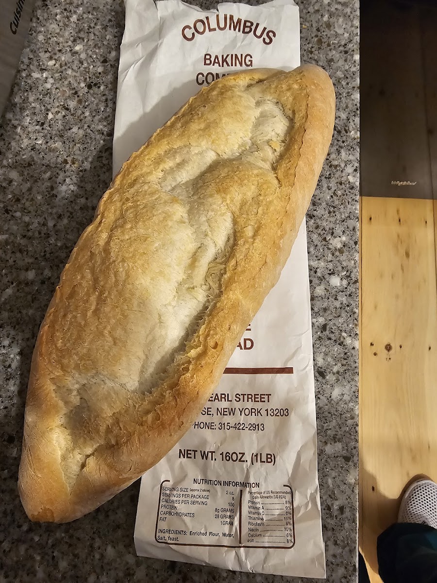 The freshest, tasty Italian bread in Central New York. This family-owned and operated company uses the same ovens it's founder instead decades ago, using the same original Italian bread recipes brought over from the old country. Loaves come in 3 types: long, round and flat. Flat loaves are per-scored for easy breaking-and-eating. I've been buying Columbus Bakery breads for over 60 years. I've lived all over the country, but never found Italian bread anywhere that competes with Columbus Bakery's quality, freshness and taste.